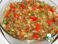 Салат: Баклажаны проткнуть вилкой по всей поверхности. Поместить на противень вместе с перцем и запечь до готовности. Поместить в контейнер с крышкой и дать остыть. Так овощи будут легче чистится. |