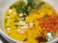Натертый на терке чеснок, масло, уксус, соль и перец взбить в блендере. |