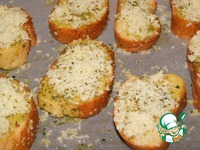 Хлеб готовим непосредственно перед подачей. Из чеснока, базилика, масла, орегано, соли и красного жгучего перца, приготовить соус, пробив все ингредиенты блендером. |