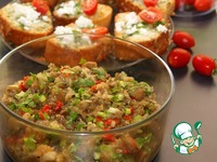 Сервировать с сыром фета, посыпав петрушкой и украсив черри, и, конечно же с салатом из баклажанов. Мммм... это так вкусно! |