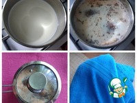 Ставим сотейник или кастрюлю с молоком на огонь. Подсаливаем по вкусу. Я солю немного, так как ем мало соли и мне достаточно 0.5 ч л. Филе же тоже натёрто солью. Нужно взять размер кастрюли такой, чтобы разместить на дне 2 филе и молоко должно их покрывать. Специально измерила свой сотейник, D-15 см. Доводим молоко до кипения и выкладываем оба филе в молоко. Специи останутся на месте, ну если только немного попадёт в молоко. Когда погружаешь кусок в кипящее молоко, он как-будто плёночкой молочной покрывается. Опять доводим до кипения и варим 30 СЕКУНД! Да-да! Я не ошиблась. Нужно приготовить пару махровых полотенец, чтобы, сняв с огня сотейник, накрыть его крышкой и очень плотно укутать, тем самым создать эффект термоса. Держим часа 2, можно 3, чтобы кастрюля с содержимым, завёрнутая в полотенце, остыла полностью. |