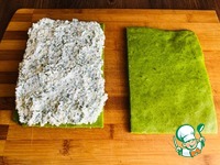 Формируем пирожное. - На одну часть бисквита выкладываем подготовленную начинку. Распределяем ровным слоем. |