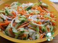 Огурец и морковь порезать соломкой. |