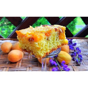 Добавить разрыхлитель и муку, взбить минуту. В форму (26 см) выложить половину теста. Сверху нарезанные маленьким кубиком нектарины и абрикосы. |