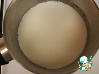 400 мл молока с сахаром и ванилином довести почти до кипения, чтобы сахар полностью растворился. |