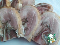 У меня было маленькое свиное ухо, я и его пустила в рулет с одной стороны. |