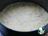 Берем разъемную форму на 21 - не меньше! Дно формы проложить пергаментом и распределить по дну тесто из холодильника. Я распределяла просто руками. |