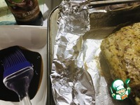 Бульон аккуратно слить, взять барбекю соус, кисточкой смазать горячие свиные рёбра. Поставить в духовку на 5-7 минут. Можно повторить два раза, я смазывала один раз. |