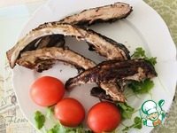 Вот такие свиные рёбра из духовки. Ребра не сгорели, это соус их подкрасил в коричневый цвет. У меня соя соус с мёдом. |