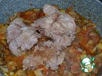 Выложить тушенку (в качестве которой вы уверены). Тушить на малом огне 2 мин. |
