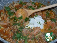 Добавить сметану и нарубленную петрушку, перемешать, прогреть 30-40 сек. и выключить огонь. |
