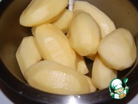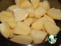 Каждый клубень разрезать на 4 части. |