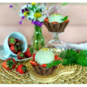 Переложить полученную массу в кастрюльку добавить ещё 100 мл. сливок, поставить на огонь, довести до кипения. Снять с плиты и дать остыть до комнатной температуры (за это время сливки вберут в себя весь мятный аромат). Затем процедить через мелкое сито. Процеженные сливки убрать в холодильник минимум на 1 час, охлаждённые они лучше взобьются. Через час к мятным сливкам добавить остальные 200 мл. сливок, взбить миксером на высокой скорости до устойчивых пиков. Затем добавить сгущённое молоко и снова взбить миксером. |