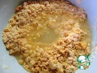 Для теста: смешать в миске кукурузную и пшеничную муку, щепотку соли и разрыхлитель теста. |