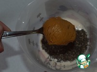 Добавить арахисовую пасту и мед. Тщательно перемешать (не должно быть комков меда и арахисовой пасты). |