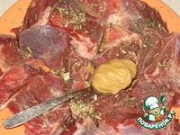 Вернуть на родину мясо, т.е. к овощам на сковороду, влить вино, сок, воду, мед, зиру, довести до кипения, накрыть крышкой и томить на медленном огне до готовности мяса, 60-80 минут, в зависимости от мяса, чтобы было мягким.