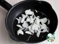 Репчатый лук (1 шт.) нарезать полукольцами. Добавить на сковороду 2 ст. ложки для пассеровки лука. Сковороду поставить на средний огонь и пассеровать лук до легкой золотистой корочки. |