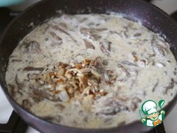 Добавить вешенки к пассерованному луку и обжарить до золотистой корочки. Сковороду отставить в сторону. |