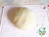Берем половину теста и раскатываем в пласт толщиной 3 мм, вырезаем кружок равный или чуть меньший дна формы. |