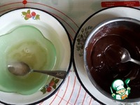 Теперь взбиваем массу миксером примерно 5 минут до тех пор, когда масса побелеет и станет густой. Затем добавить растопленный шоколад, перемешать. |