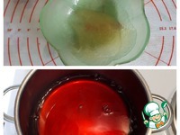 Приготовим желе. Желатин залить водой. Вишневый сок довести до кипения, отставить и добавить желатин, хорошо расмешать. |