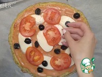 На противень выслано пергаментом выкладываем грибную основу, формируем круг толщиной 0,5 см. Отправляем в духовку на 15-20 мин при температуре 180 градусов. |