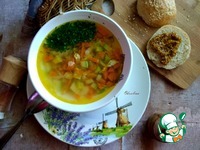 В кастрюлю с толстым дном, где вначале мы будем тушить овощи, а затем варить суп, наливаем масло. Греем его и выкладываем зубчик чеснока, разрезанный вдоль пополам. Держим чеснок с минуту, чтобы он отдал аромат маслу, затем его можно убрать. Я сделаю это чуть позже.