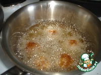 Ставим на плиту масло растительное в сотейнике и нагреваем его тем временем накатали колобков (на один колобок 1 ч. ложка фарша) |