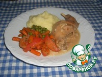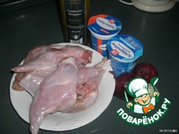 Мои ингредиенты. Целого кролика у меня не было, думаю то это никакой роли не сыграет. Сметану можно заменить сливками, только тогда соус придётся загустить. |