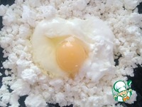 Просеиваем муку, смешиваем ее с разрыхлителем. Охлажденное сливочное масло нарезаем маленькими кубиками, и смешиваем с мукой. Растираем до состояния крошки. |