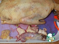 Вот наша утка. Если есть необходимость, осмаливаем ее. Промываем и обсушиваем бумажными полотенцами. Также на этом этапе стоит убедиться, что утка поместится по высоте в вашу духовку. |