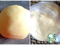 Тесто обмять, сформировать шар, переложить в целлофановый пакет и поместить в холодильник на 20 минут. |