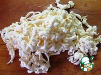 Для кабачкового слоя: кабачки натереть на терке. Добавить щепотку соли, перемешать, дать постоять 5 минут. |