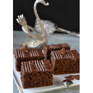 Поностью остывший пирог полить шоколадной глазурью. У меня готовая шоколадная газурь, которую я просто разогрела. |