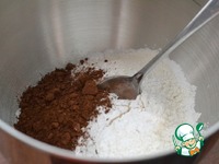 В миске миксера лопаткой смешать муку, разрыхлитель теста и какао-порошок. |