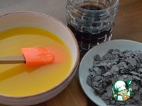 Добавить сахар, ванильный сахар, яйца, растопленное и охлажденное масло, 125гр вина и на средний оборотах миксера все взбить. Добавить шоколадную стружку или капли, лопаткой аккуратно перемешать. |