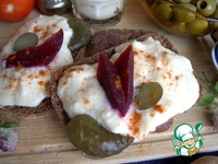 Я люблю сочетание сыра вот с таким чисто ржаным грубым хлебушком. Хлебцы продают уже разрезанные вдоль. |