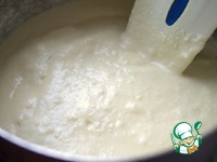 Поставить на небольшой огонь в кастрюле с толстым дном. Постоянно помешиваем, чтобы не пригорело. Вначале творог растопился и масса была жидкая, думаю, это зависит от качества творога. |