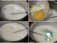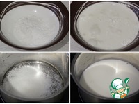 Готовим мухаллеби. Смешать рисовую муку с крахмалом, добавить 0,5 стакана молока и хорошо перемешать, чтобы не было комочков. В кастрюлю всыпать сахар, влить оставшееся молоко. |