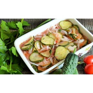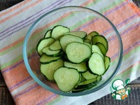 Огурцы вымыть, нарезать кружочками. Сложить в чашку, пригодную для СВЧ. |