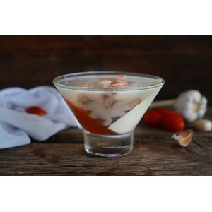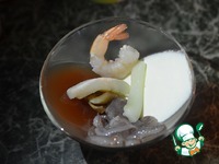 Описание: Красивое порционное заливное из морепродуктов. Оригинально смотрится на столе благодаря интересному сочетанию слоев. Готовится очень просто - главное хорошо охладить каждый слой.