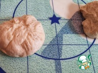 Шарик разрезать на 4 части, каждую приплюснуть рукой. |