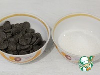 Отмерить 150 г шоколада и 100 г сахара. Если вы используете шоколад не в каллетах, то мелко нарубите его. |