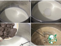 Сливки и молоко влить в кастрюлю, добавить к ним сахар и шоколад. Помешивая, довести массу почти до кипения (сахар и шоколад должны полностью раствориться) и снять с огня. |