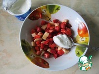 Клубнику с бананом аккуратно перемешать, добавить йогурт. Еще раз перемешать. |