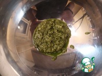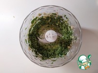 Далее начинаем постепенно, столовыми ложками, добавлять оливковое масло и продолжаем перемалывать. |