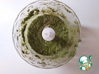 Поместить в блендер орешки, листья базилика, пармезан тёртый, чеснок выдавленный, соль, перец, добавить две столовых ложки оливкового масла и перемолоть. |