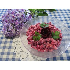 Описание: Салатов с крабовыми палочками на сайте очень много, но такого не нашла. Интересное сочетание свеклы и крабовых палочек. Готовится быстро, подойдет и для повседневного меню, и для праздничного стола.