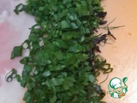 В это время подготовить начинку. Нарезать чеснок и зелень. |