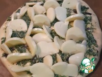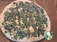 Описание: Румяная фокачча с сыром и большим количеством зелени.